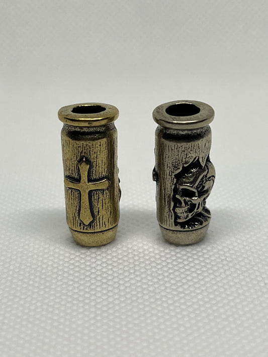 Brass Skull & Cross Bullet Lanyard Bead, EDC Paracord Bead.